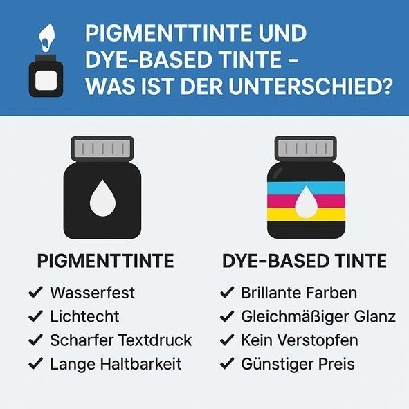 Fazit: Es gibt keine "bessere" Tinte, sondern nur die passendere Tinte für den jeweiligen Druckauftrag. Für brillante, aber kurzlebige Farbfotos ist Dye-Tinte ideal; für langlebige, archivierbare Dokumente oder Fotos ist Pigmenttinte die erste Wahl.